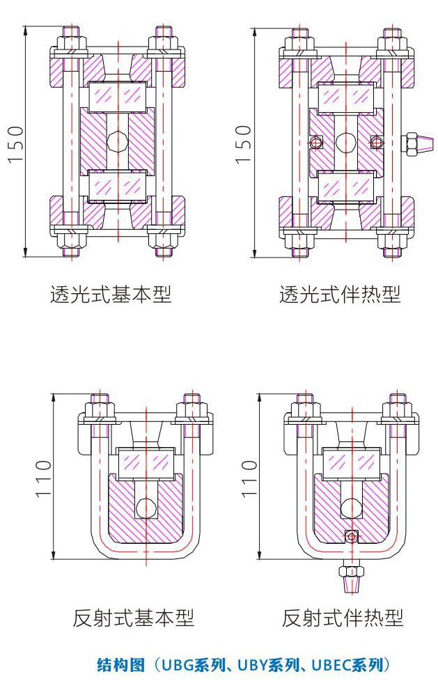 UBG系列、UBY系列、UBGY系列高溫高壓玻璃液位計(jì)由表體、上閥門、下閥門、排污閥(或排污法蘭)、放空閥(或放空堵頭)組成。上下端安裝法蘭與容器上對(duì)應(yīng)法蘭相連構(gòu)成連通器、透過(guò)玻璃板可直接觀察到容器內(nèi)液位的實(shí)際高度,上、下閥門內(nèi)均設(shè)有安全保護(hù)裝置,當(dāng)玻璃板意外損壞時(shí),保護(hù)鋼球在容器內(nèi)壓的作用下自動(dòng)密封,防止容器內(nèi)液體繼續(xù)外泄。